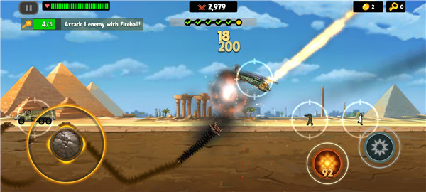 3、你需要不斷的襲擊上面的動(dòng)物、人類以及各種車輛、飛機(jī)等人類社會(huì)的文明產(chǎn)物,或者獲取炸彈、興奮劑等獎(jiǎng)勵(lì)加強(qiáng)戰(zhàn)斗力,并獲得擊殺經(jīng)驗(yàn)值并升級(jí)。