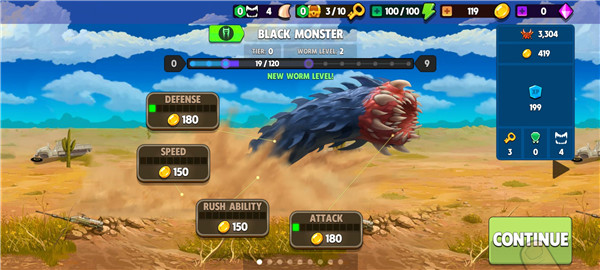 6、通過對蠕蟲的各個(gè)部位進(jìn)行升級(jí),可以獲得更加強(qiáng)大的能力;