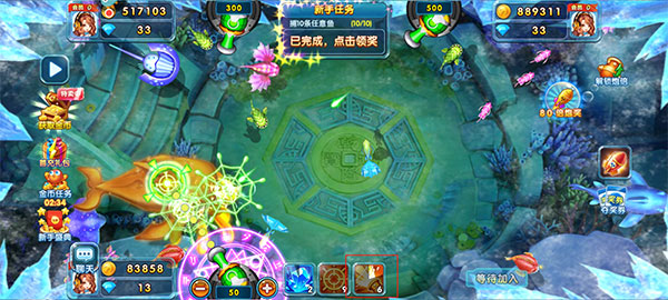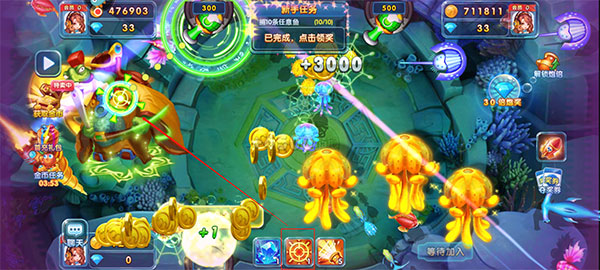 4、在游戲過程中,會有場景切換,即魚陣。在這個時候,魚一般是非常密集的,不斷地射擊子彈和添加一些金幣。