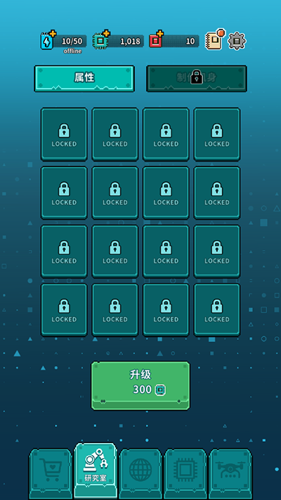2、設(shè)置好后,點擊下方研究院按鈕可以進行屬性升級、制作機身;