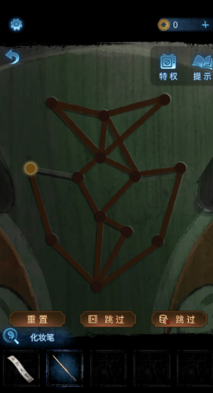 8、前往暗門(mén)后的桌上,使用化妝筆蘸取紅色顏料把門(mén)上的臉譜一筆畫(huà)完。