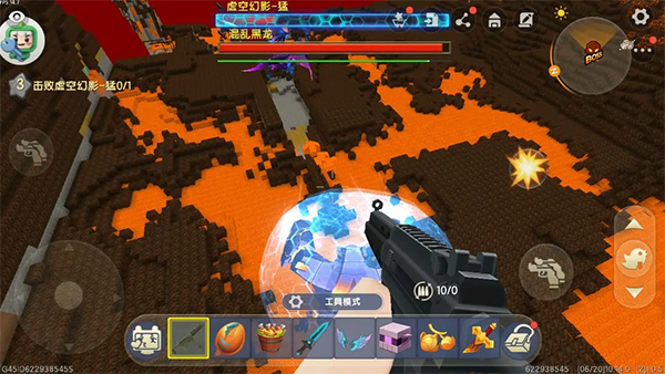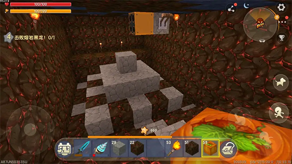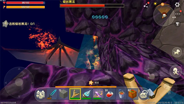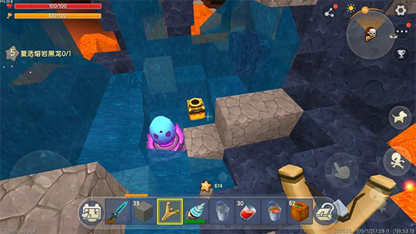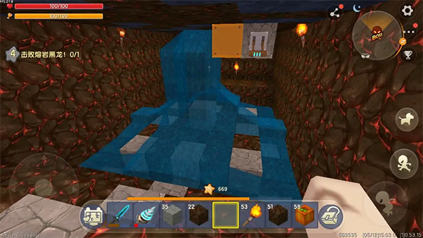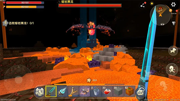 熔巖黑龍會向你噴射巖漿,巖漿遇水會變成黑曜石和石頭在你四周型成堡壘,用鉆石鎬鑿個孔就可以用遠程武器還擊了。
