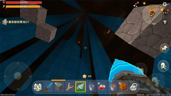 三、進入龍心直奔龍巢底部,找準機會利用石塊升高進入龍巢,用石塊把自己固定在水柱下面,吃氧氣豆防止溺水,吃西瓜汁加防火狀態(tài)。