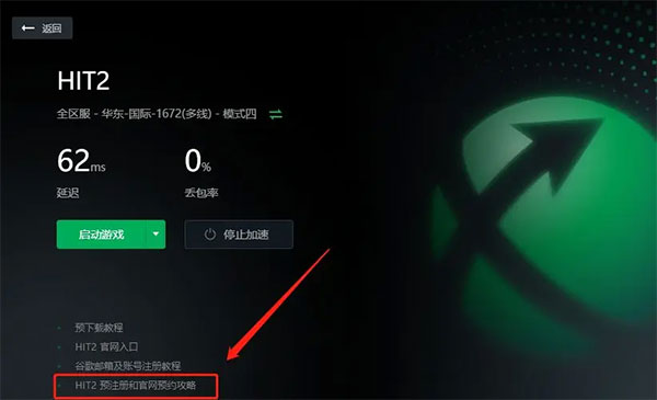2、在加速界面點(diǎn)擊“hit2預(yù)注冊和官 網(wǎng)預(yù)約攻略”進(jìn)入教程。