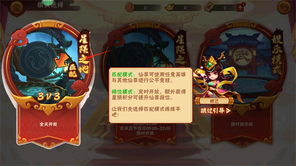 2、選擇好角色后會(huì)獲得師徒三兄弟,點(diǎn)擊競技模式選擇3v3。