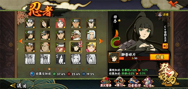 各位學(xué)員每次成功招募忍者,均可提升角色全屬性,而且不同的忍者還會(huì)有不同的收集加成,這能幫我們提升不少戰(zhàn)力呢!