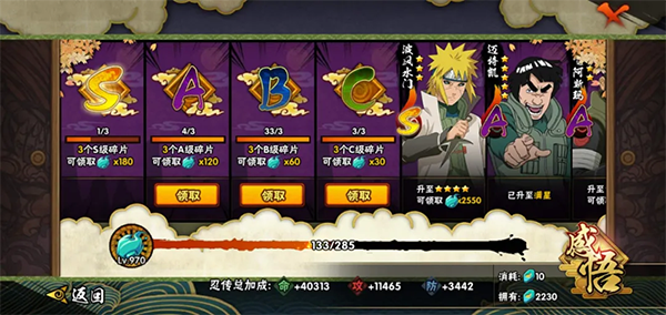 在收集忍者碎片的過(guò)程中,忍傳系統(tǒng)也可以幫我們提升戰(zhàn)力。如下圖所示: