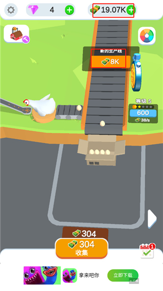 3、獲得一只母雞,這樣就相當(dāng)于獲得一條生產(chǎn)線,母雞產(chǎn)生的雞蛋將會(huì)直接成為玩家的收益;
