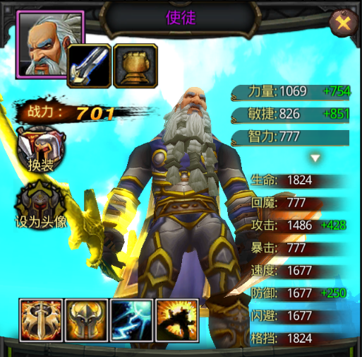 使徒是力量英雄,所以攻擊值由力量點數(shù)決定,攻擊:1486(力量點數(shù)提供的)+428(武器提供)
