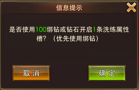 玩家可以使用100綁鉆或鉆石開啟新的洗練屬性槽,開啟時(shí)將自動(dòng)生成一條洗練屬性,每件裝備最多可以擁有4條屬性槽。只要花費(fèi)100鉆即可擁有高額屬性,小編認(rèn)為性價(jià)比是很高的哦!
