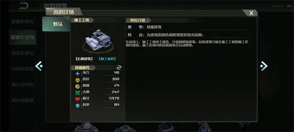 聯(lián)盟軍和晉升者的建筑部施工工地的生命和護(hù)甲都是:5970血,84甲