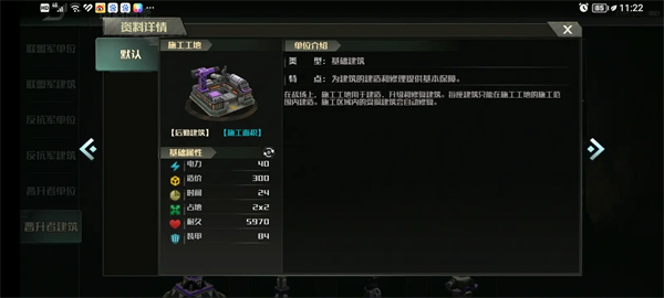 解鎖建筑:施工工地上限2,突擊車工廠上限2,特種車工廠上限2,空軍工廠上限2,船塢上限2,基礎(chǔ)防御塔上限3,炮塔上限2,防空塔上限4,海上防御塔上限3
