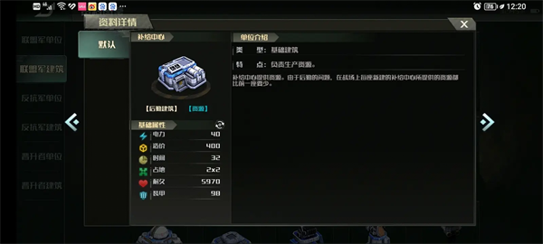 1級(jí):0度電,1000錢,40秒(國(guó)服的指揮中心是不能重建的,但國(guó)際服可以,具體的我也不了解,但這里只討論國(guó)服就沒必要深究了)