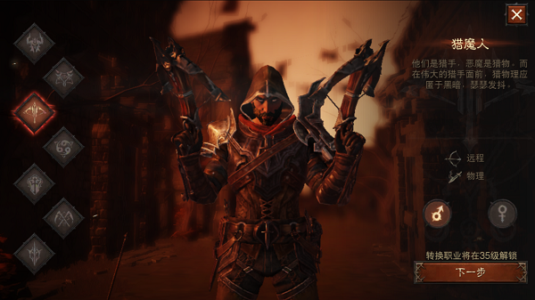 獵魔人是無情的俠義之士,會從遠處發(fā)起進攻;他們是經(jīng)過訓練的惡魔獵人,卻身負悲慘的過去——他們的家人被烈焰地獄的惡魔所害。獵魔人用錘煉的戒律積蓄能量,一往無前地發(fā)起進攻,直到他們的獵物任由自己擺布。