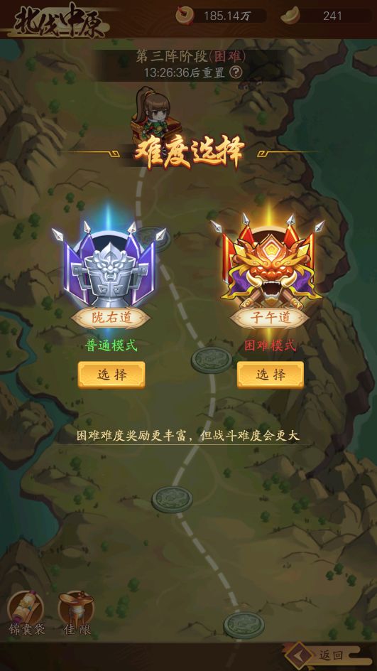 ④關(guān)于北伐中原,游戲中主角經(jīng)驗(yàn)獲得重要途徑之一,每天最多打3關(guān),所以有實(shí)力的情況下,盡可能的選擇高難度關(guān)卡,所獲得經(jīng)驗(yàn)最優(yōu)。
