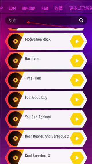 1、下載進(jìn)入節(jié)奏彈球游戲,可以看到游戲中擁有大量的歌曲;