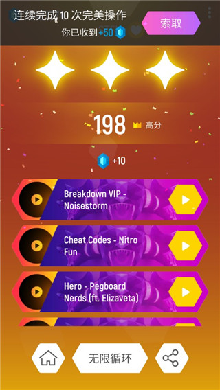 根據(jù)旋律左右滑動(dòng)引導(dǎo)彈球在方塊間跳躍
