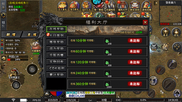 6、點擊屏幕右上角的福利大廳,這里可以在完成某些任務(wù)后領(lǐng)取福利道具;