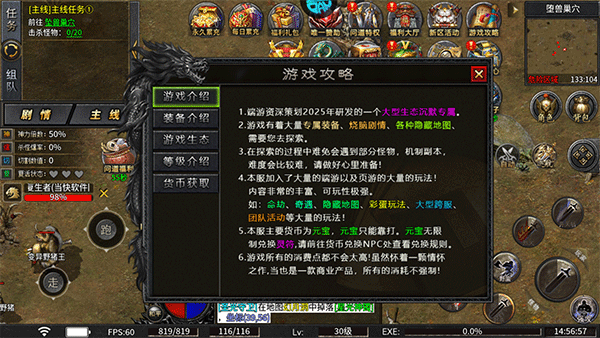 7、最后點擊屏幕右上角的游戲攻略可查看關(guān)于游戲的裝備、生態(tài)、等級以及貨幣獲取的眾多詳細介紹。