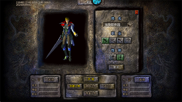 2、創(chuàng)建你的人物,選擇職業(yè)、性別,再取一個ID,完成后點擊開始;