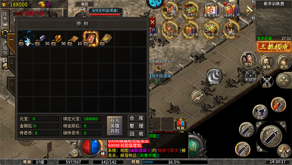 6、刷怪獲得的道具獎勵可以點擊屏幕右側(cè)的背包以查看。