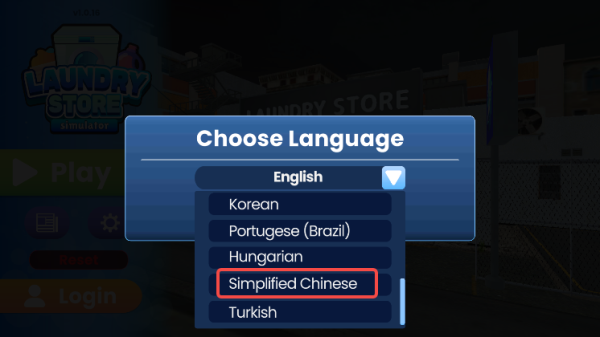 1、進入游戲,在choose language界面找到下拉三角;