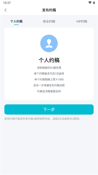 2、僅需三步即可開啟約稿之旅,輕松接單獲得滿足體驗。