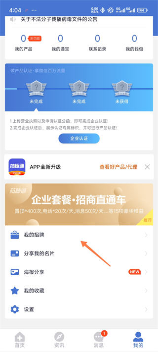 5、發(fā)布成功后,點擊【我的-我的招聘】