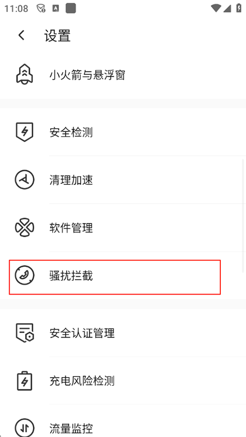 2、進(jìn)入設(shè)置頁面點(diǎn)擊騷擾攔截;