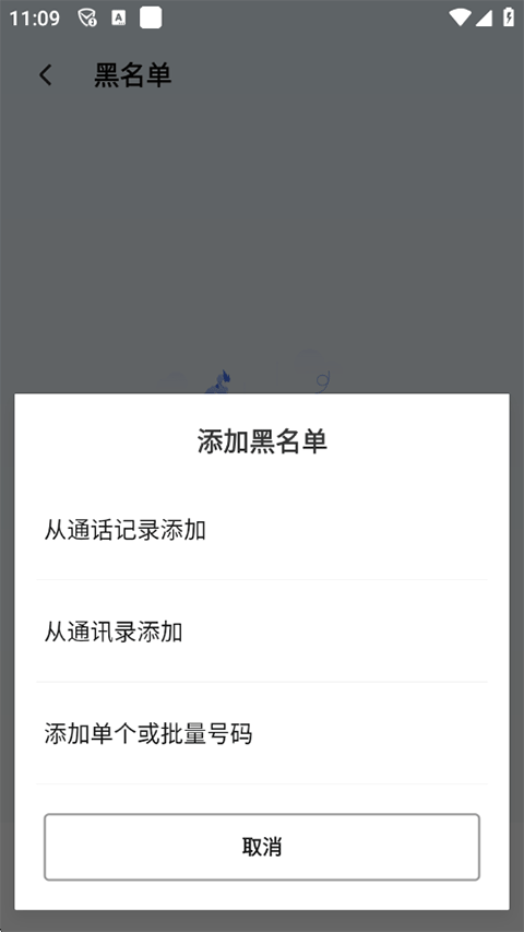 5、添加黑名單,可以從通話記錄、通訊錄、添加單個(gè)/批量號碼。