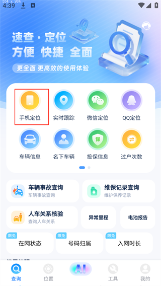 1、打開軟件點(diǎn)擊手機(jī)定位