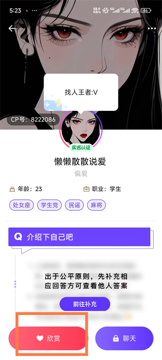 5、找到之后點(diǎn)擊欣賞【雙方互相欣賞時(shí)免費(fèi)聊天】