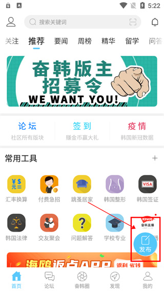 1、打開軟件,來到主頁,點擊右下角的“發(fā)布”;