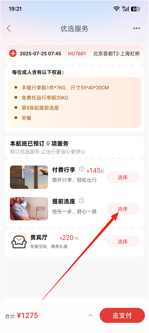 新增預(yù)約選座,提前選定心儀座位,助您旅行一路順心。