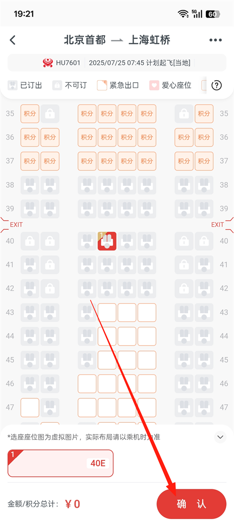 5、選好座位之后,點(diǎn)擊確認(rèn)