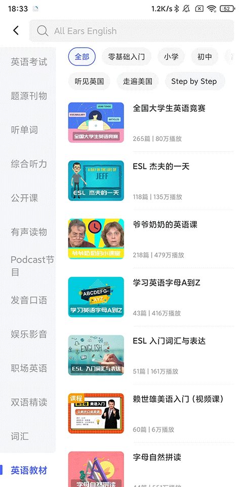 4、興趣學(xué)習(xí):有聲讀物、名人演講、公開課、少兒英語、影視英語等豐富資源。