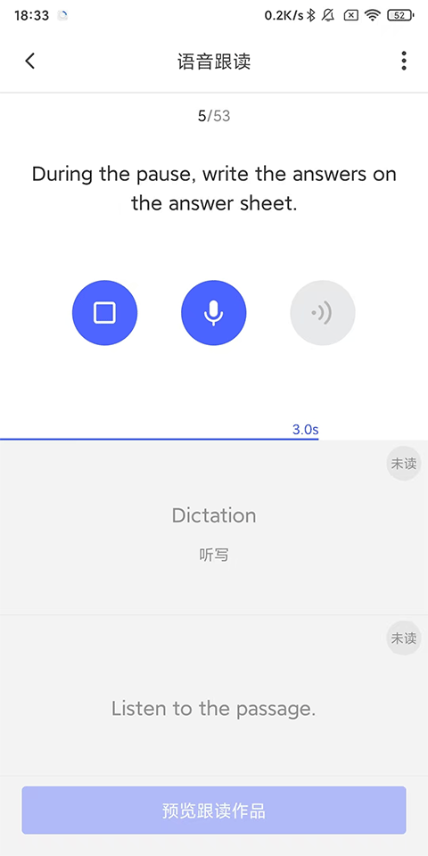 5、點擊【預(yù)覽跟讀作品】,開始跟讀吧!