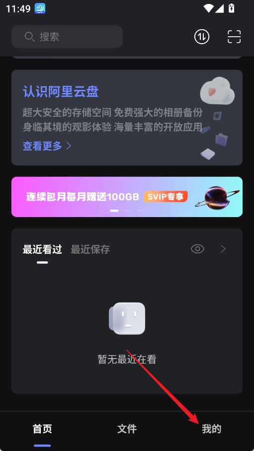 1、打開阿里云盤手機(jī)版,點(diǎn)擊底部的【文件】功能進(jìn)入文件列表。