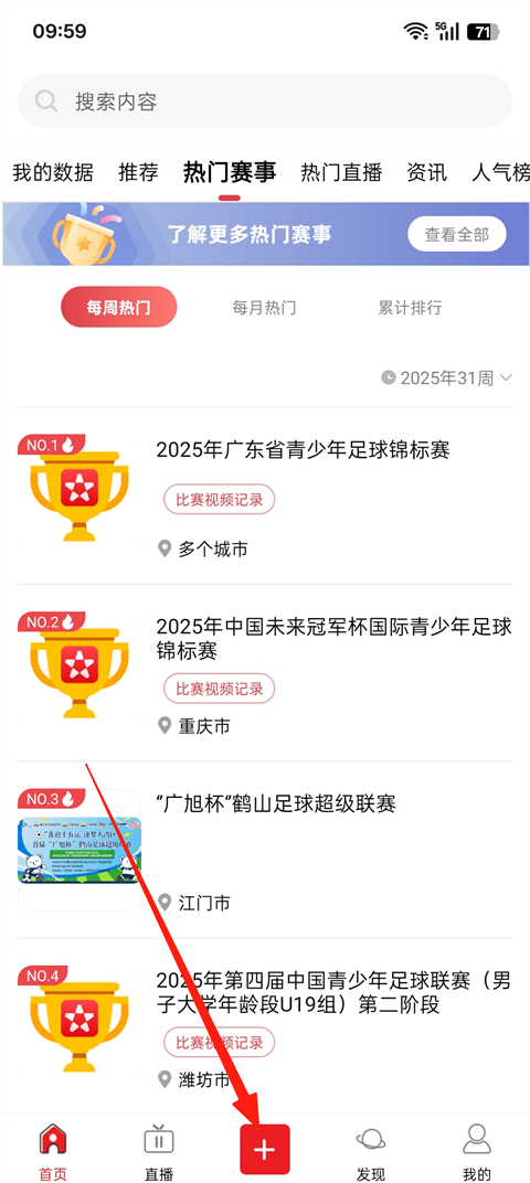 1、打開(kāi)我是球星App,登錄之后,點(diǎn)擊加號(hào)