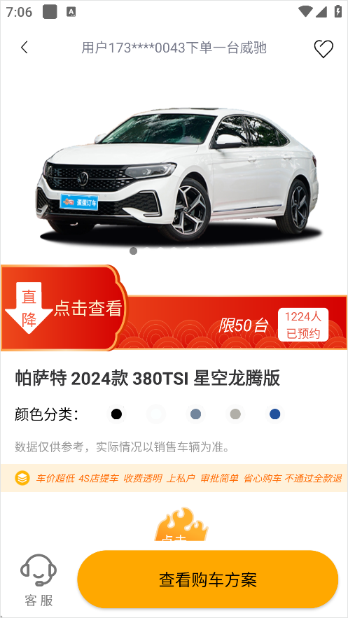 3、提供線(xiàn)上預(yù)約購(gòu)車(chē)服務(wù),專(zhuān)業(yè)客服即時(shí)響應(yīng),高效解答用戶(hù)各類(lèi)購(gòu)車(chē)咨詢(xún)問(wèn)題。